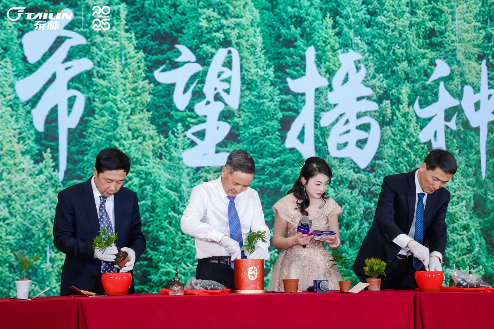 在大會的尾聲,舞臺上迎來了一幕溫暖的場景。領(lǐng)導(dǎo)團隊攜手上臺,將精心挑選的樹苗,親手植入盆栽之中,泥土的芬芳與新芽的生機交織,一場關(guān)于希望的播種儀式就此開啟。讓我們攜手共進,在新的一年里,扎根于公司的沃土,汲取養(yǎng)分,茁壯成長,共同書寫更加輝煌燦爛的明天!
